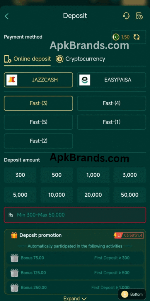 The platform supports local payment options in Pakistan. Users can deposit easily using common methods. This makes transactions simple and fast. It is helpful for local users. Payments are easy to manage.